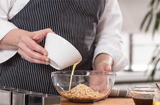 3. Pour the melted butter over the mixture and mix until a uniform mixture is obtained.