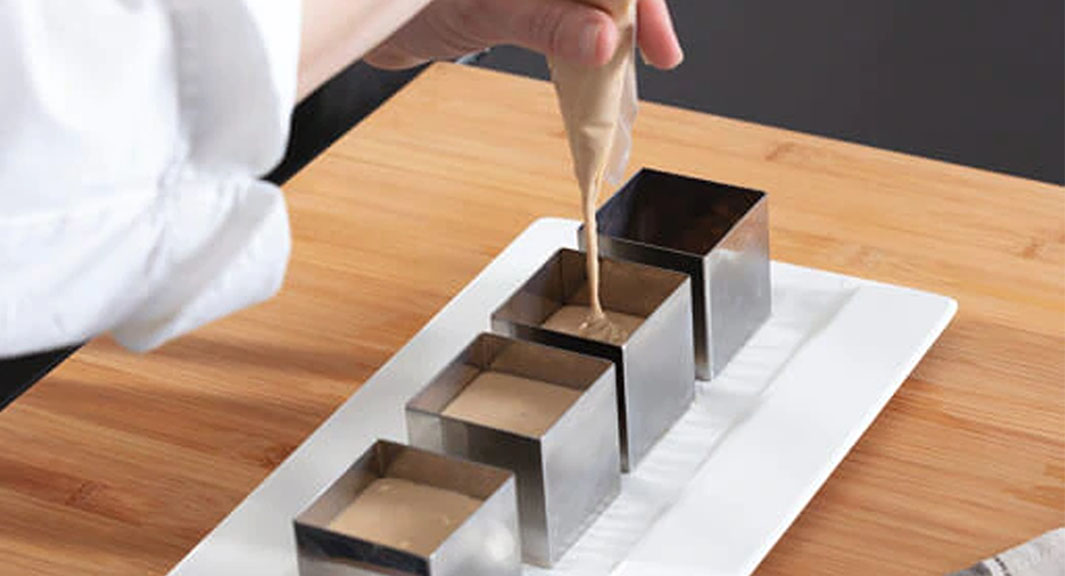 1. Place a layer of biscuit dough about half a centimetre thick on the bottom of a single-portion mould and let it cool in the fridge for 30 minutes.
